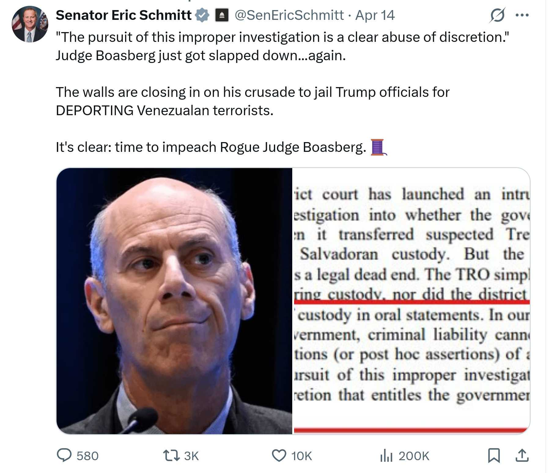 It's clear: time to impeach Rogue Judge Boasberg. 🧵